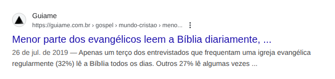 Estimasse que cerca de 20% somente, teem o hábito da leitura bíblica